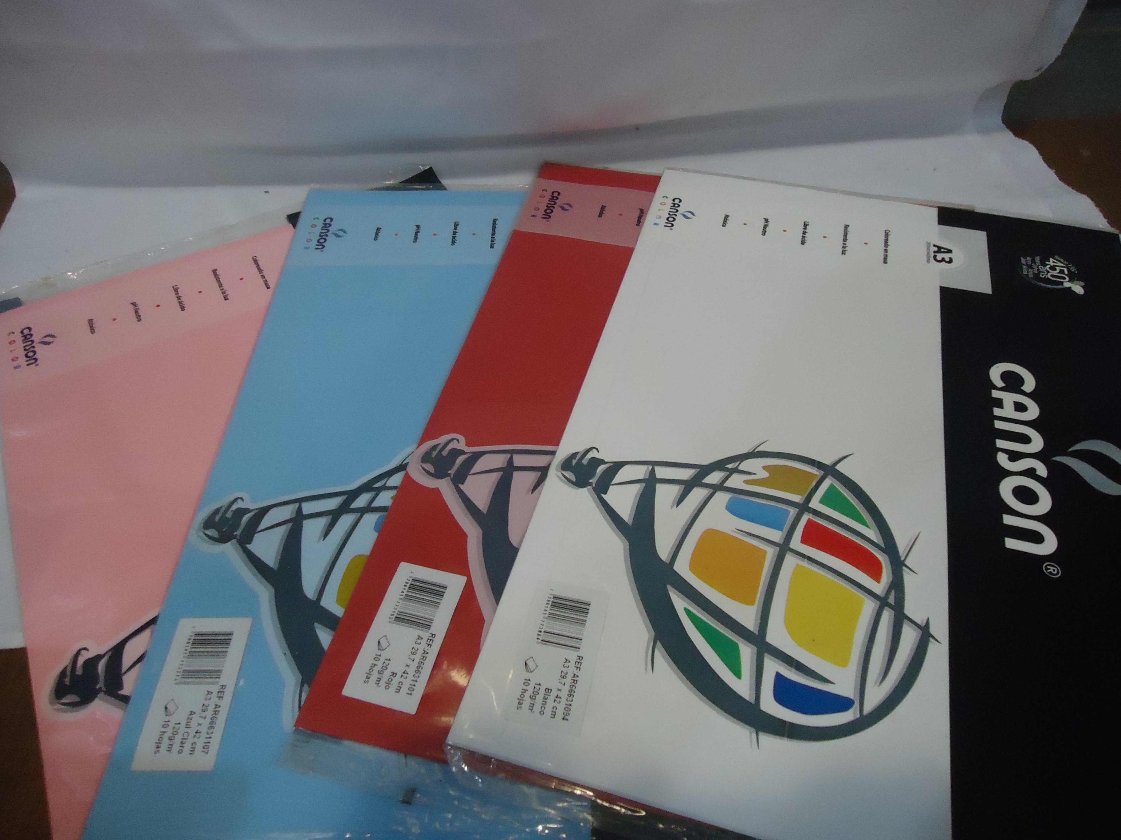 PAPEL CANSON A3 120 grs. V/COL. X 10 hj