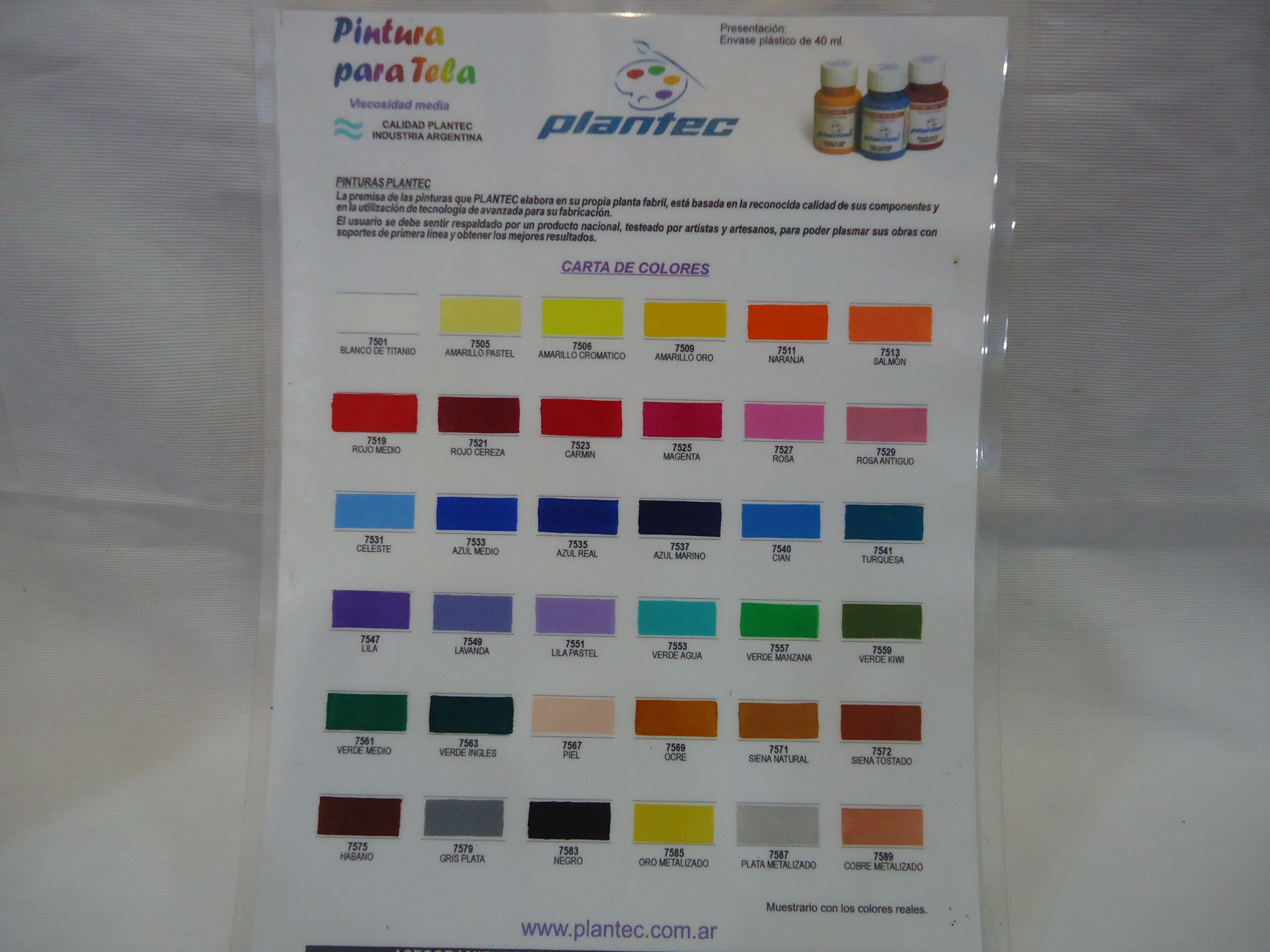 PINTURA P/TELA PLANTEC X 40 ml. COMUN$ 1 500,00 -